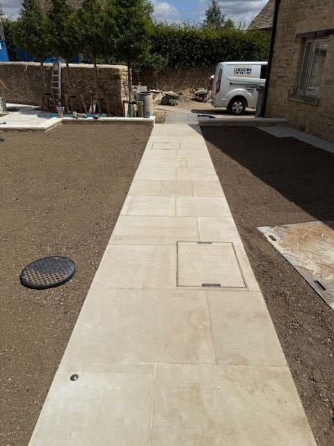 Paving & Footpaths: Yorkstone paving and granite set footpaths laid to create a high-quality, durable, and visually appealing outdoor space.